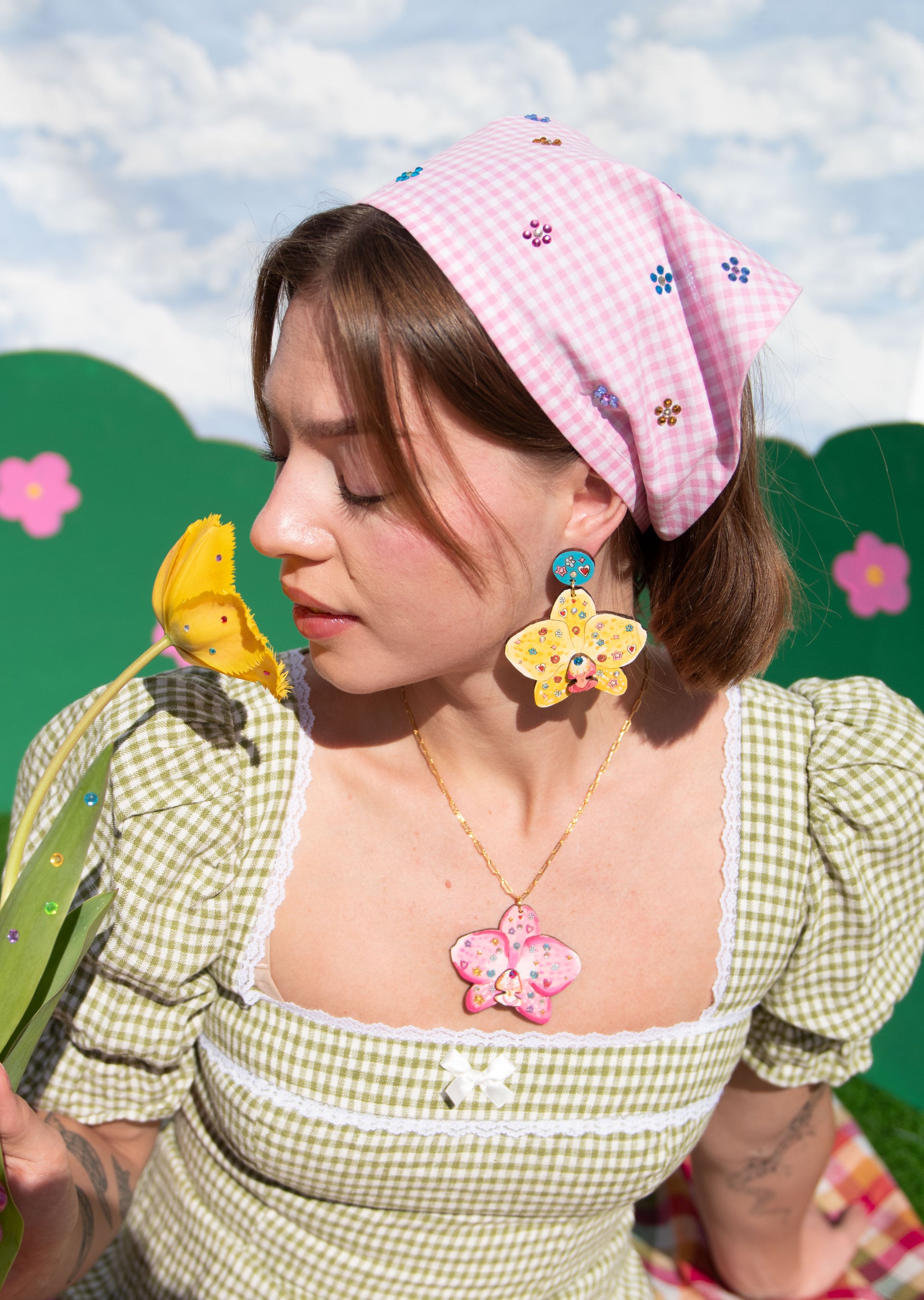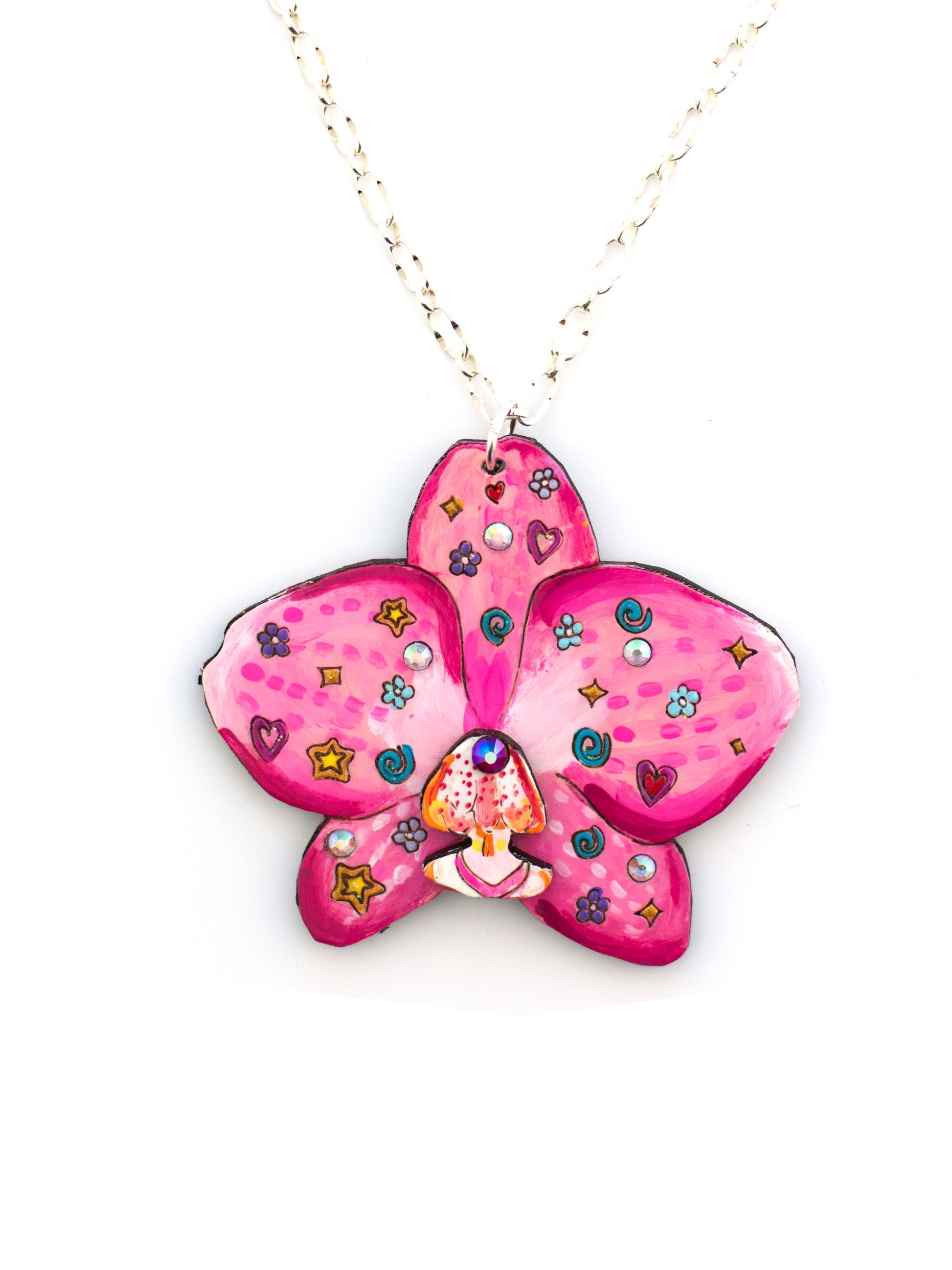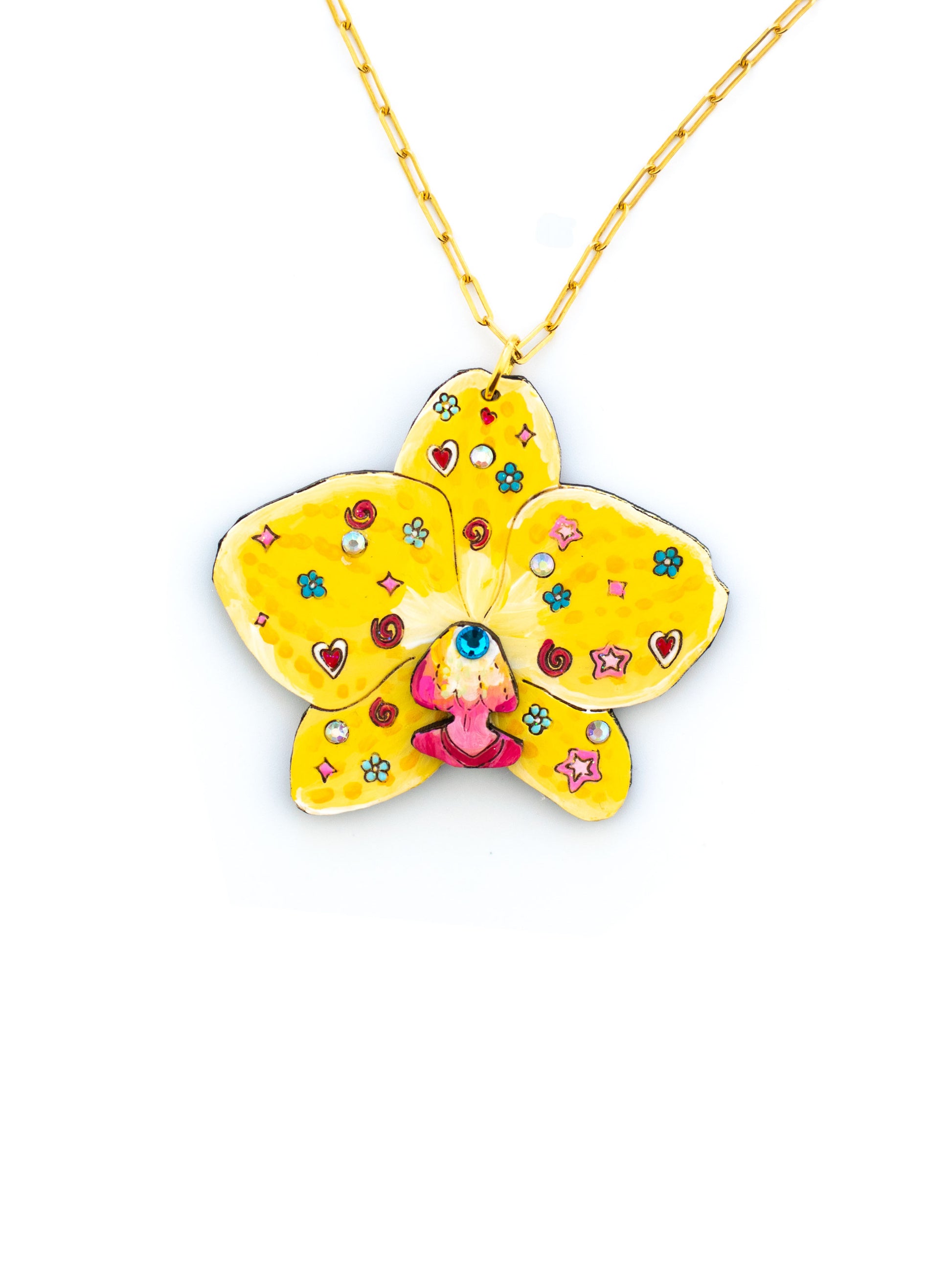 🌺A bedazzled orchid necklace available in pink or yellow