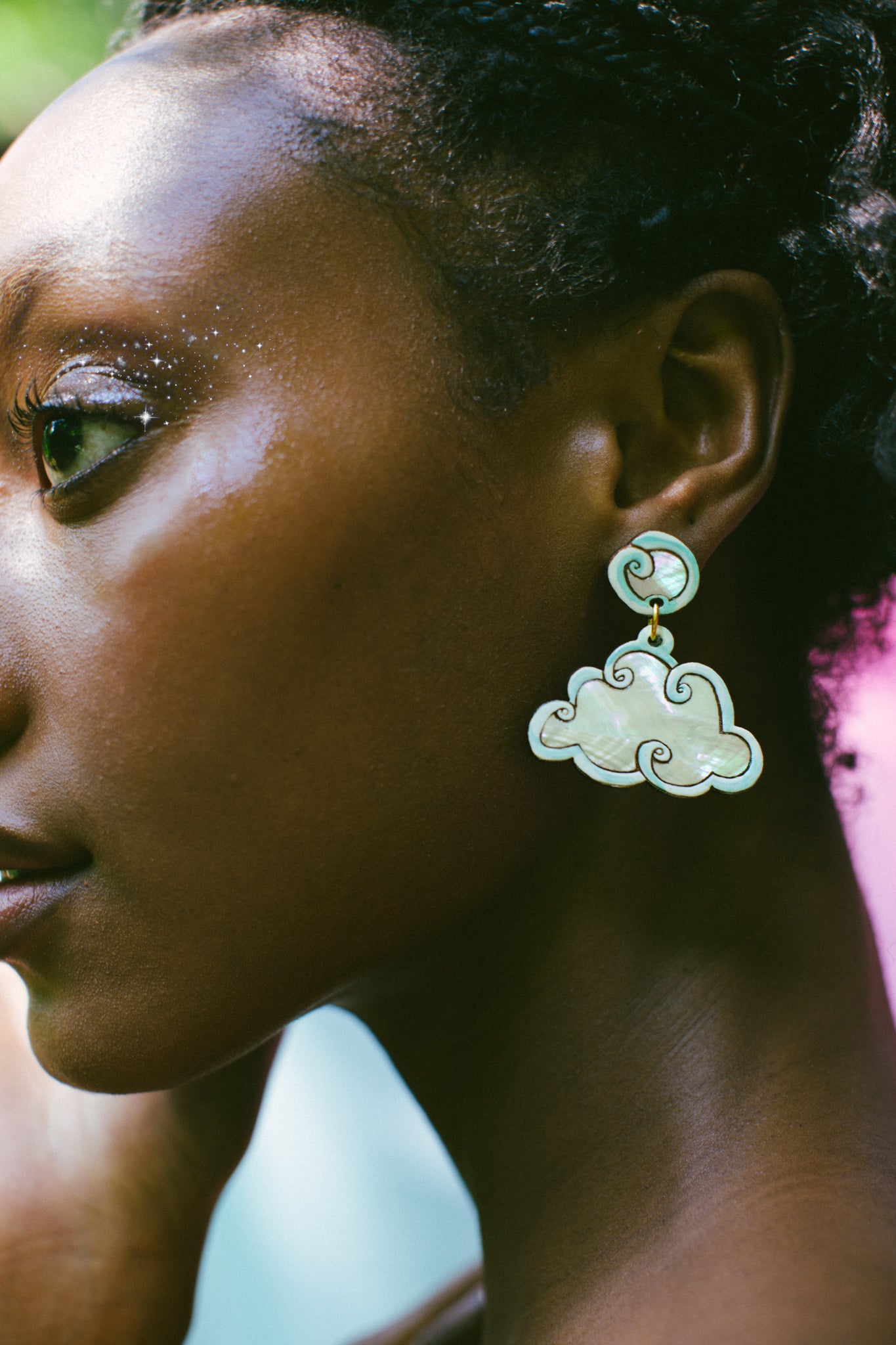 ☁️A whimsical pair of cloud earrings. Inlaid with sustainable abalone for a sparkly shine