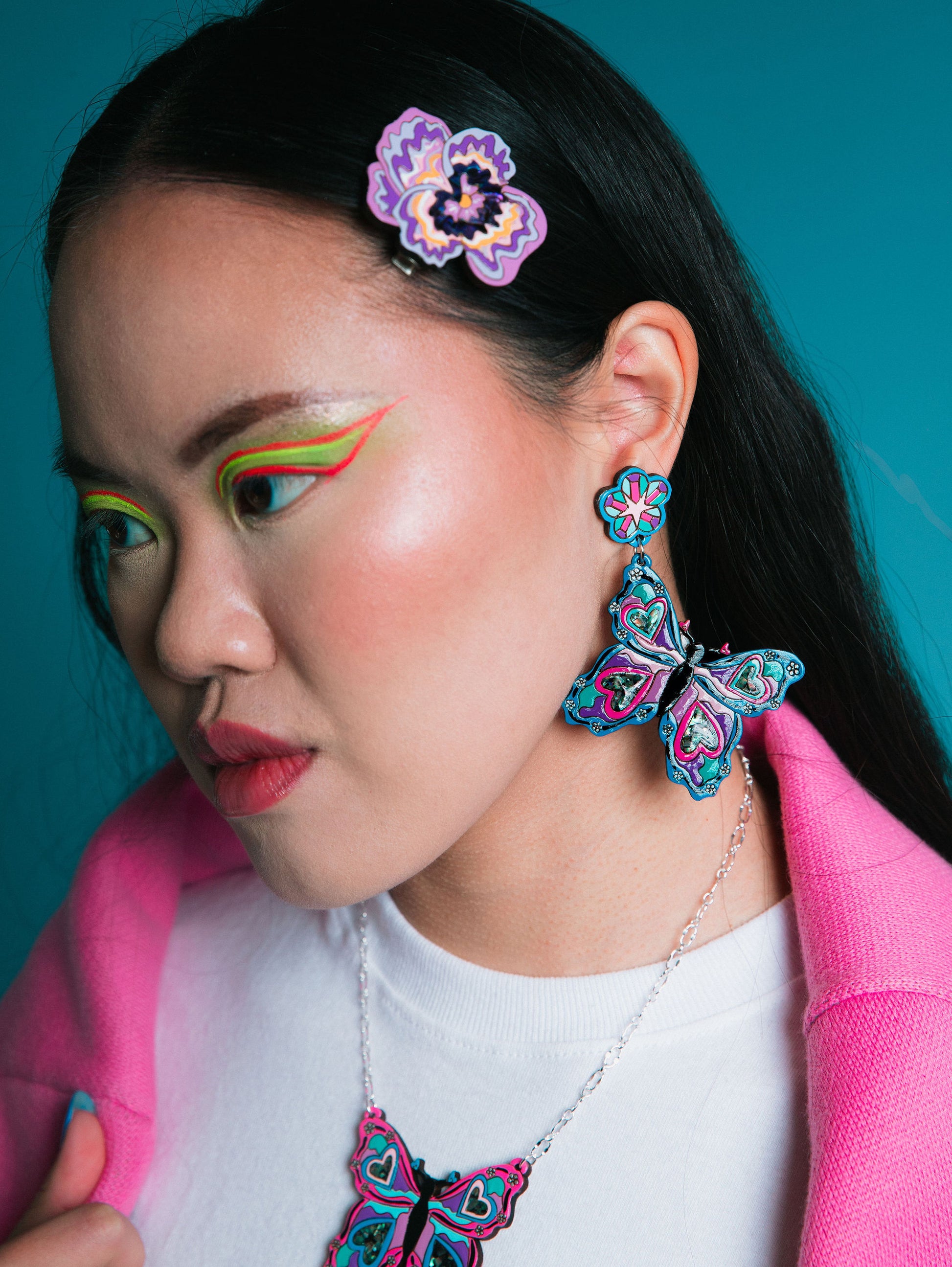 🌺A bold hair clip featuring a hand painted pansy with inlaid purple abalone.