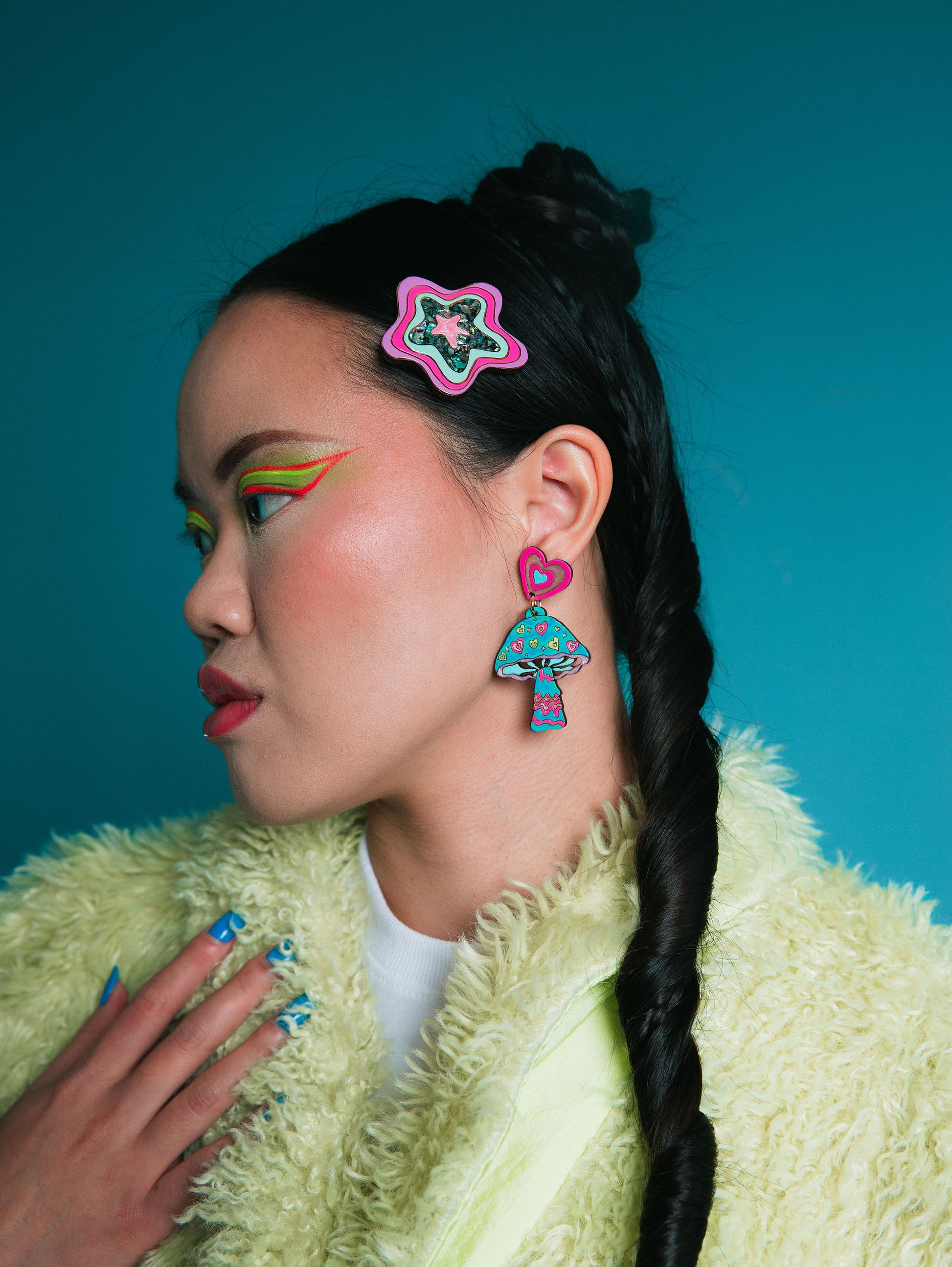 ⭐ Our bold popstar hair clip is hand painted with Y2K colors and inlaid with sustainable paua shell