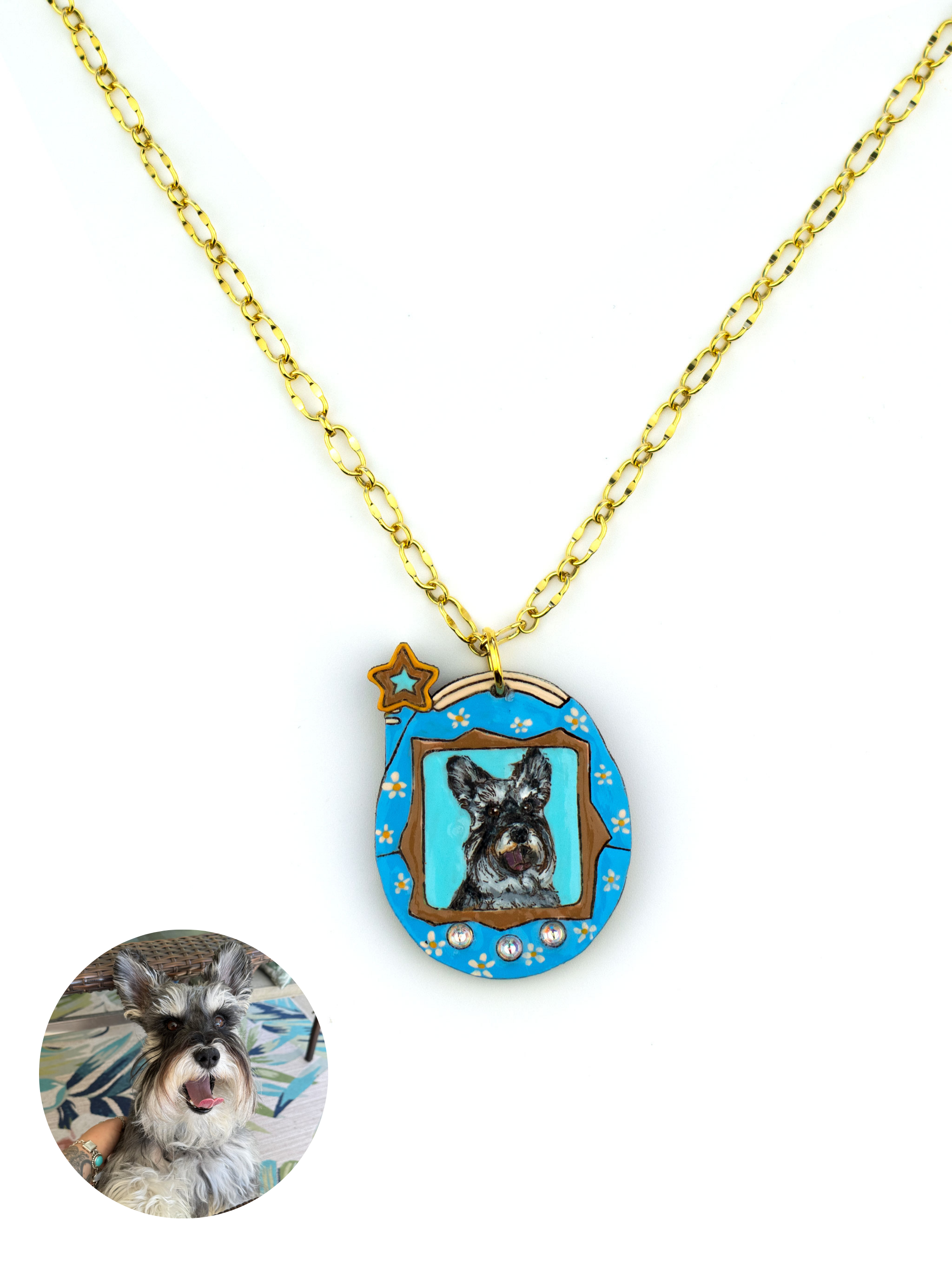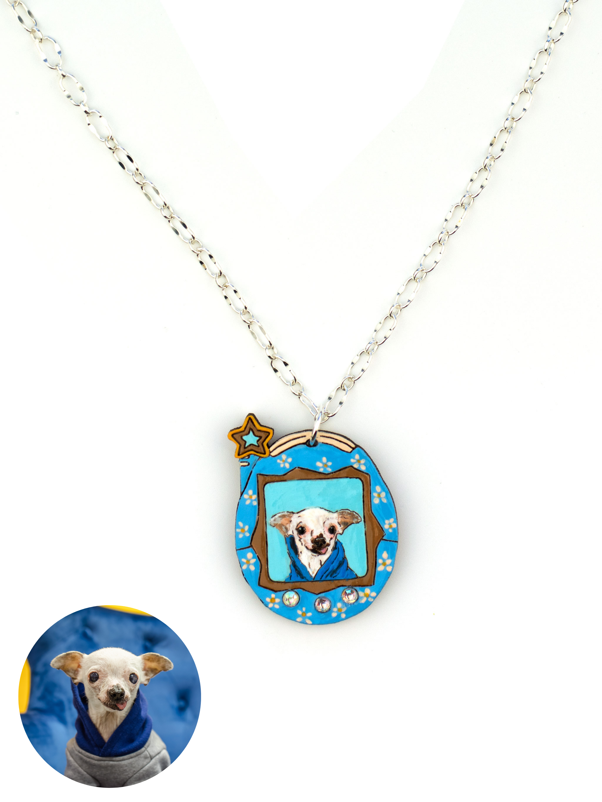 🐾Wear a piece of nostalgia with our LADY & LORD X BHABSY Y2K pet portrait necklace. Inspired by the beloved virtual pet toy of the y2k era, we hand paint your pet's photo onto a keychain, allowing you to take your furry friend with you wherever you go. The perfect accessory for pet lovers.