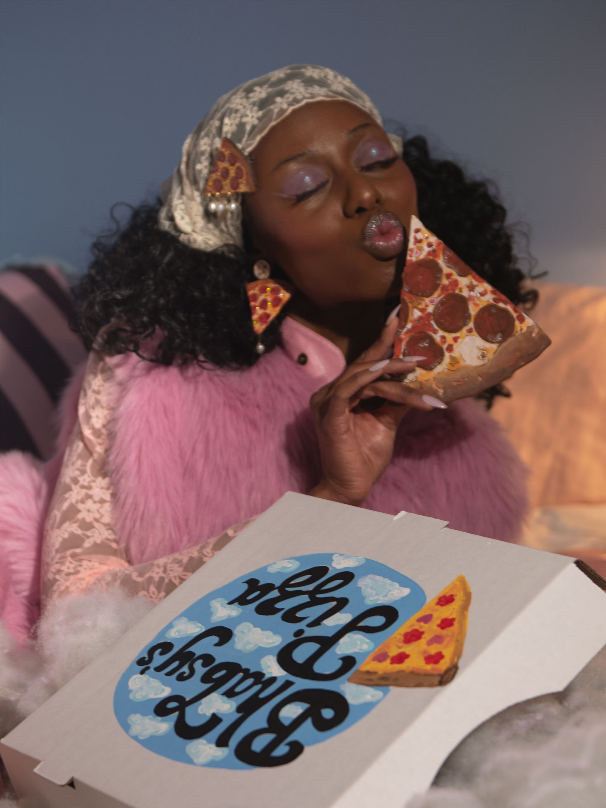 🍕whimsical pizza earrings with delightful detailed doodles, rhinestones and a dangling pearl at the end