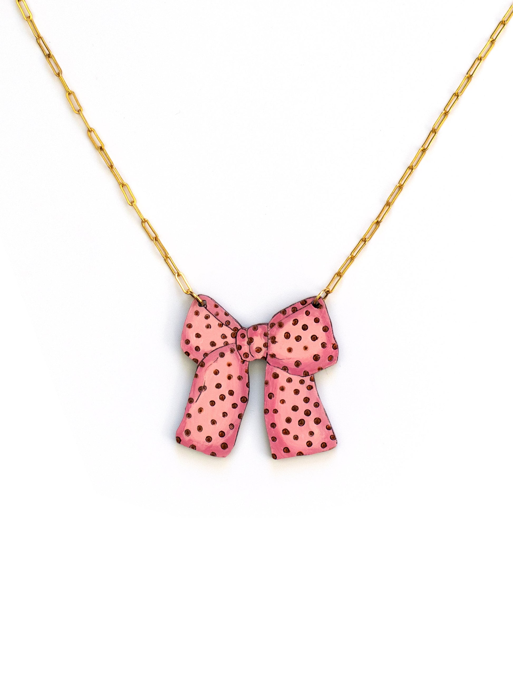 🎀pretty bow necklace with a handpainted polka dot pattern