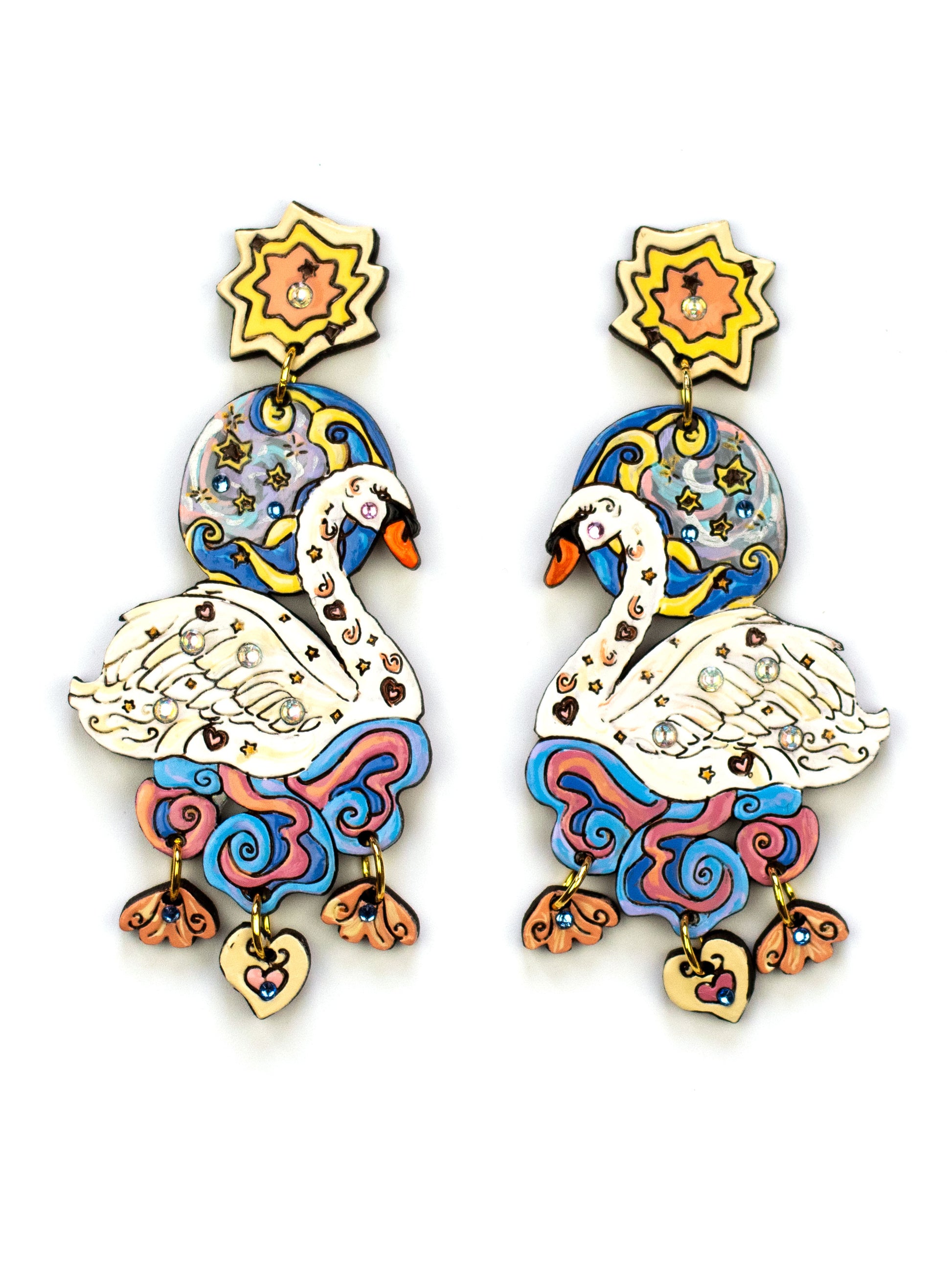🦢Glide into enchantment with these magical Sweet Dream Swan Earrings! Each pair features an elegant swan design paired with a dreamy moon backdrop, all adorned with shimmering rhinestones that sparkle with every movement.