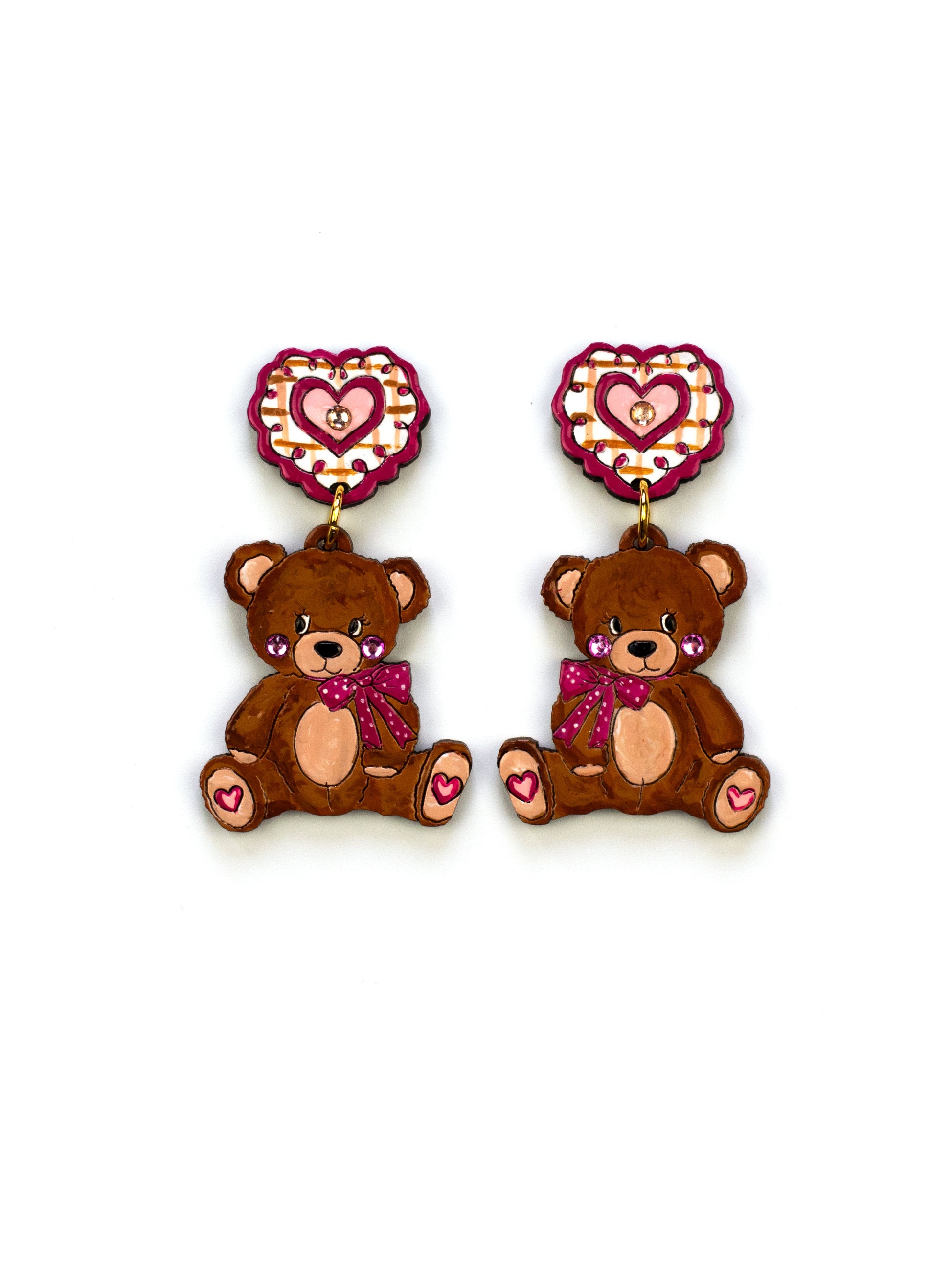 🧸 Bring back the magic of childhood with these delightful Teddy Bear Earrings! Each pair showcases a handpainted teddy bear design, complete with sparkling rhinestone details that add a touch of glamour to this timeless companion.